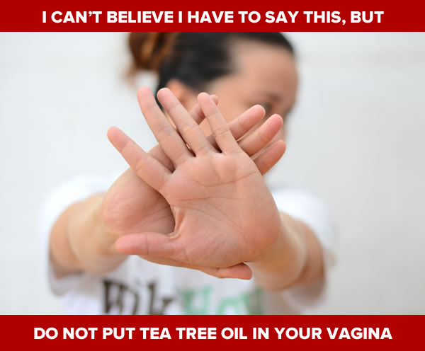 - 4 web pages citing actual doctors telling you that for the love of everything good and holy, please don’t put tea tree oil in your vagina, and