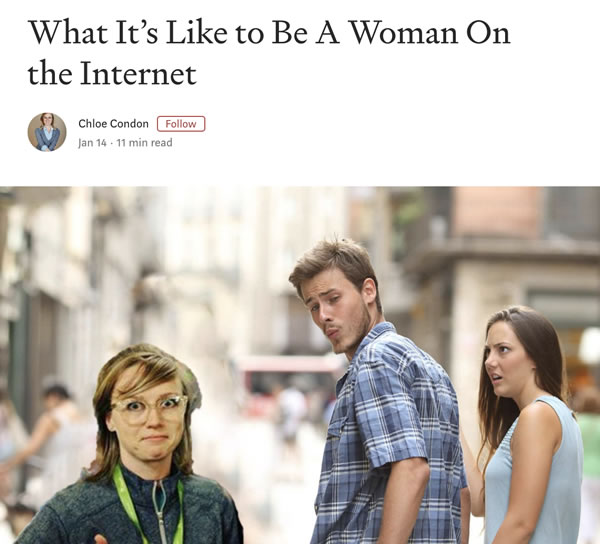 what its like to be a woman on the internet Post author By Joey deVilla Post date January 14, 2019 No Comments on what its like to be a woman on the internet Leave a ReplyYou must be logged in to post a comment.