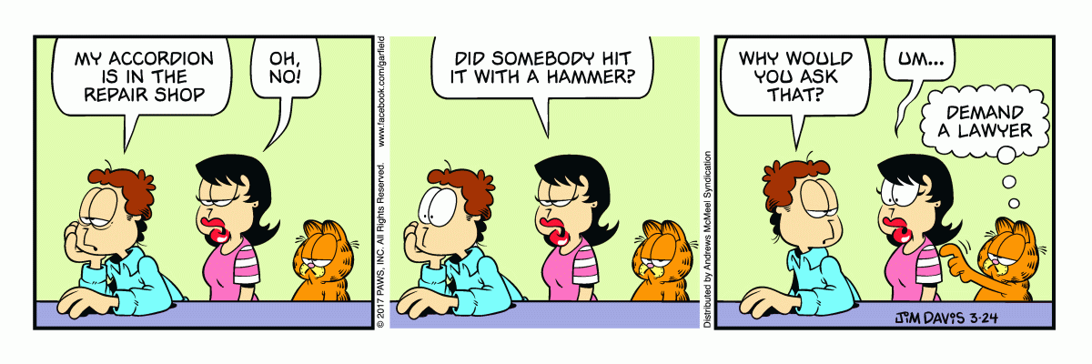 Jon’s (he’s Garfield’s hapless human) love of the accordion has been a running gag in Garfield for a long time…