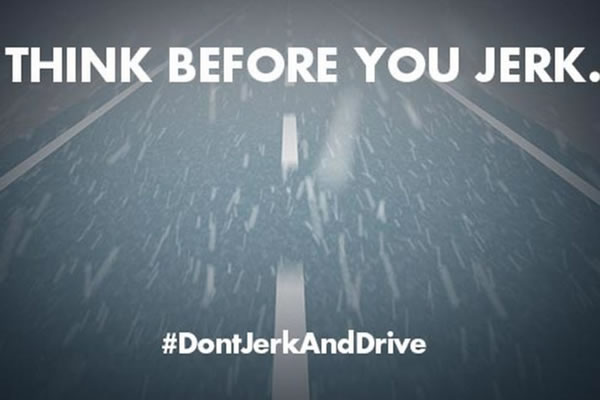 It’s a poor double entendre — the joke meaning is easy to get, but it’s really hard to tell what they really mean by “jerking and driving.” It turns out that it’s the tendency to suddenly the steering wheel when you start to skid on snowy roads.