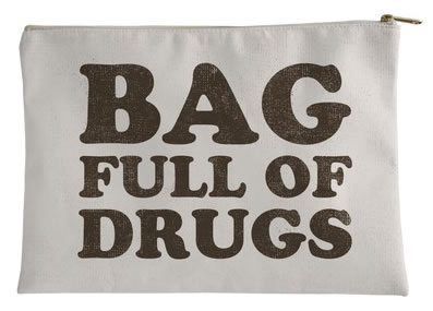 …and if you’d like to throw off suspicious cops, perhaps the “Definitely not a bag full of drugs” tote bag might be what you’re looking for (US$32.99 at Human):