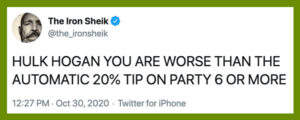hulk hogan you are worse than automatic tip Tap to see the original Tweet. Post author By Joey deVilla Post date October 30, 2020 No Comments on hulk hogan you are worse than automatic tip Leave a ReplyYou must be logged in to post a comment.