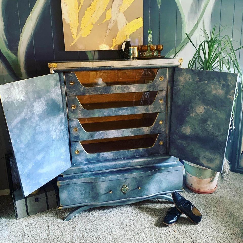 Why just get a dresser when you can get a chiffonier? And why just get a chiffonier when you can get one with the hand-painted image of Commander James Bond — original recipe Sean Connery Bond, no less — lovingly painted on the front drawers?