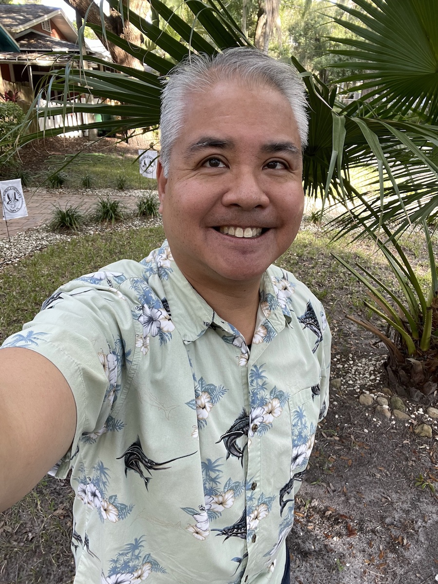 Aloha shirts — a.k.a. “Hawaiian shirts” — are my sartorial “thing”, and the Stehles have the best selection I’ve seen in a long time. I bought a lot of them, and over the week, I’ll post them here. The photo at the top of this article is the second in the set.