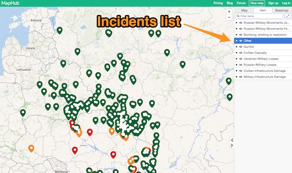 Another way to view incidents on the map is to use the list on the right side: