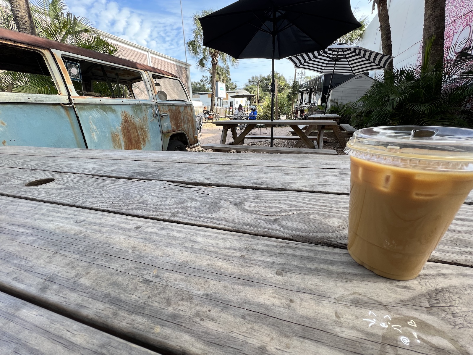 At least once a week, I stop by the Seminole Heights branch of Spaddy’s, which is a coffee truck in an open-air courtyard: