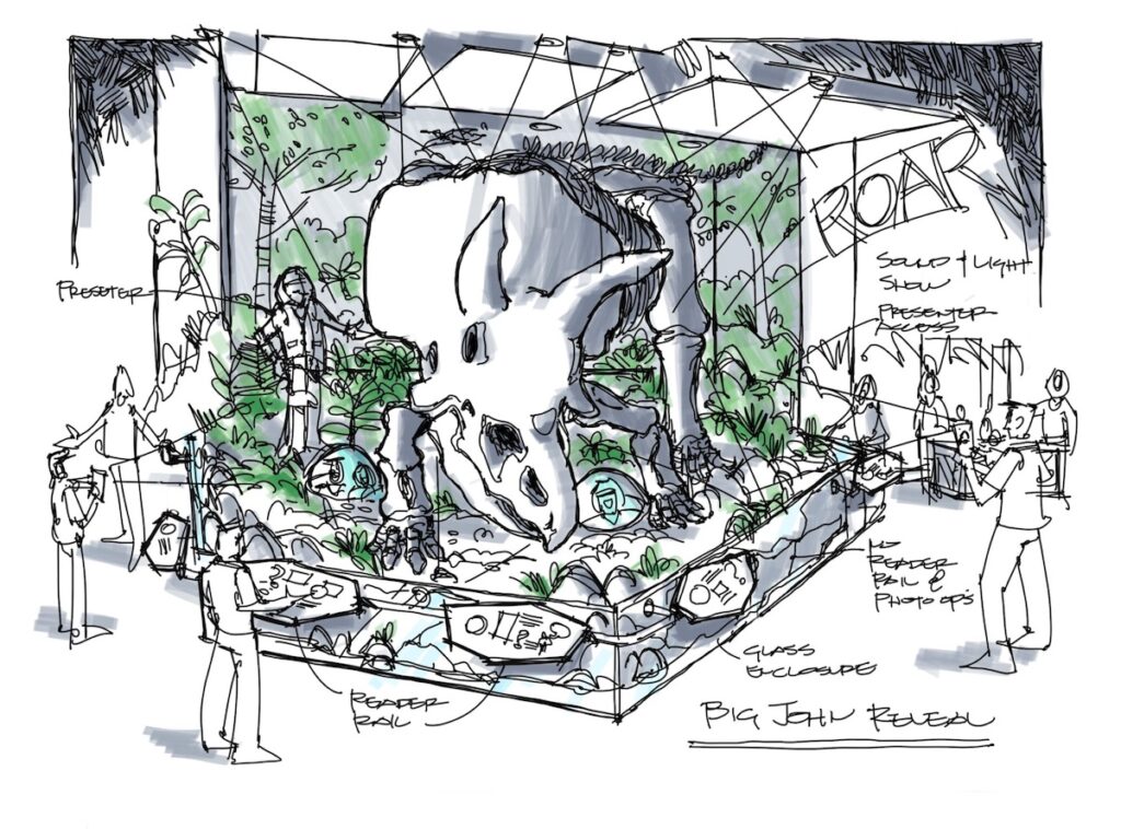 You’d better believe there are big plans to show off Big John properly. He’s going to be the centerpiece of a brand new exhibit at the Glazer Children’s Museum, and I’ve included the exhibit designs in this article.
