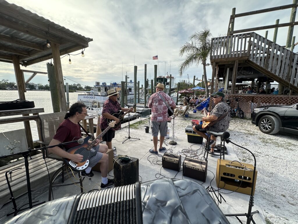 Last night, I joined Tom Hood and the Tropical Sons at Bayou Bistro, a little bar and restaurant located right on the bayou just east of the Greek “village” in Tarpon Springs.
