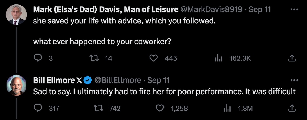 I hope he extended her a little extra understanding for providing some life-saving advice, but there may have come a point where dismissing her (and ideally with a generous severance package) would have been fair.