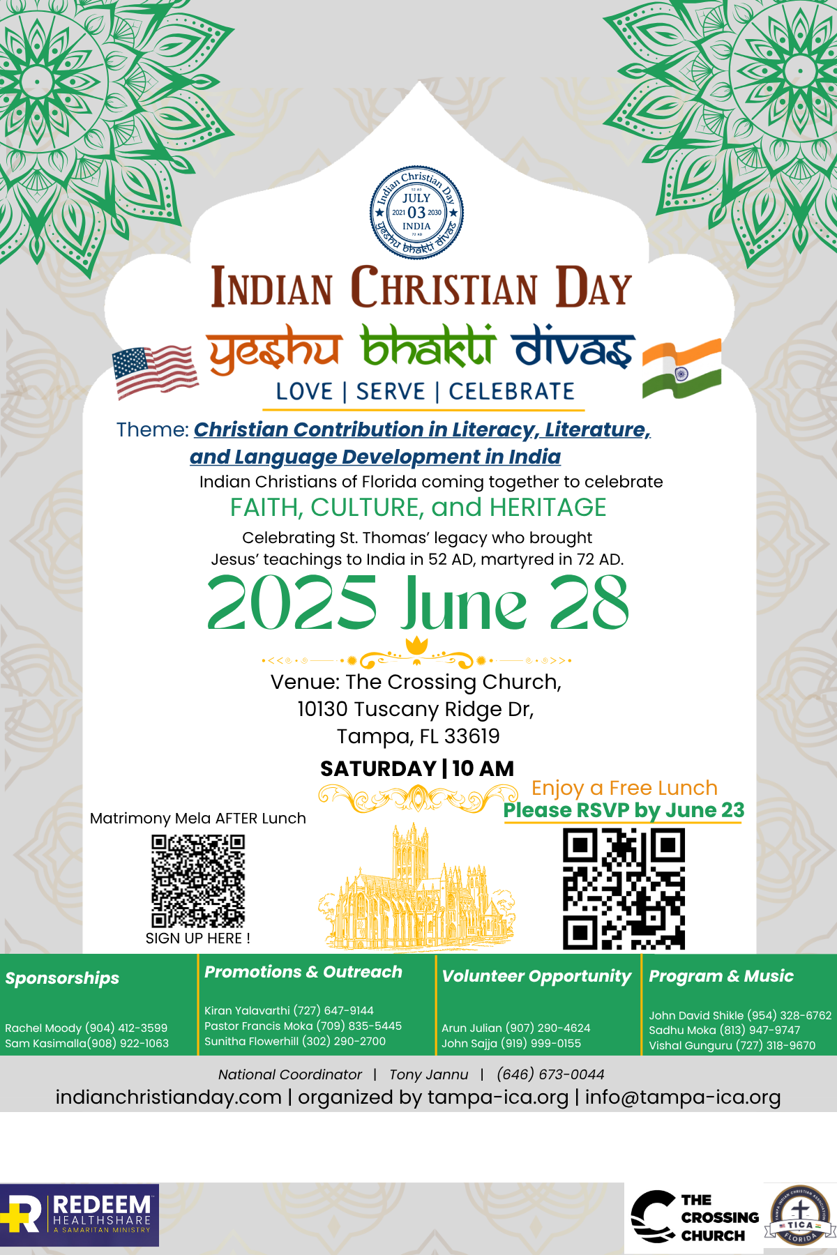 Find out more about this Saturday’s events at the Tampa Indian Christian Association’s site.