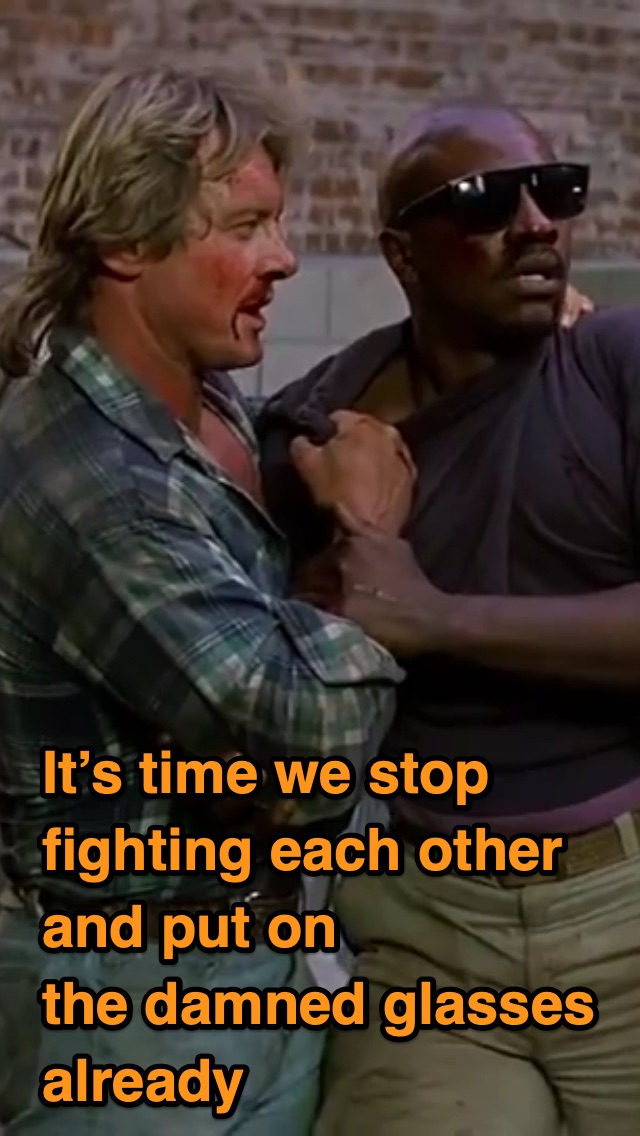 First, an important message from John Carpenter’s classic 1980s film, They Live…
