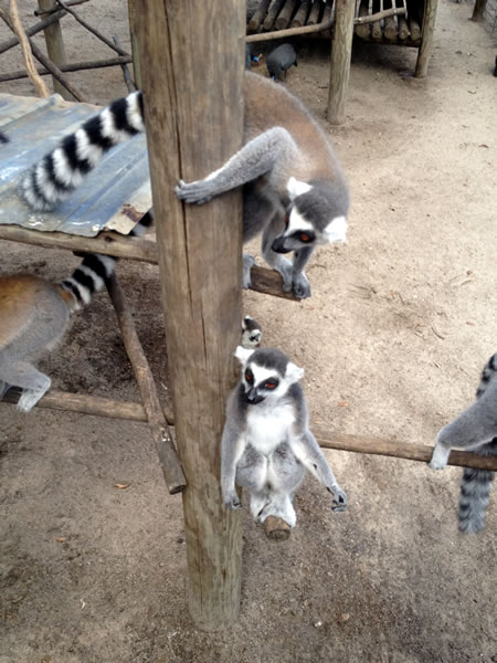 While posing for pictures with the lemurs in the background, a few of them got pretty friendly…