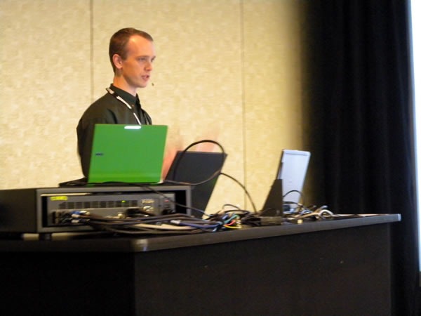 An unfortunate set of circumstances speaker shortages and cancellations means that Rick had to deliver all the presentations for day 2 of his track, Servers, Security and Management. That’s 300 minutes in total behind the lectern. It’s quite fortunate that he knows his stuff and that his theatre training makes him an excellent presenter: