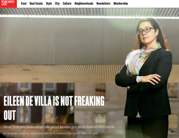 Toronto Life’s June 2020 issue features a story on my sister titled Eileen de Villa Is Not Freaking Out. Regular readers of this blog will know that my sister Eileen is Toronto’s Medical Officer for Health, which means she oversees the public health agency for Canada’s largest city and economic capital.